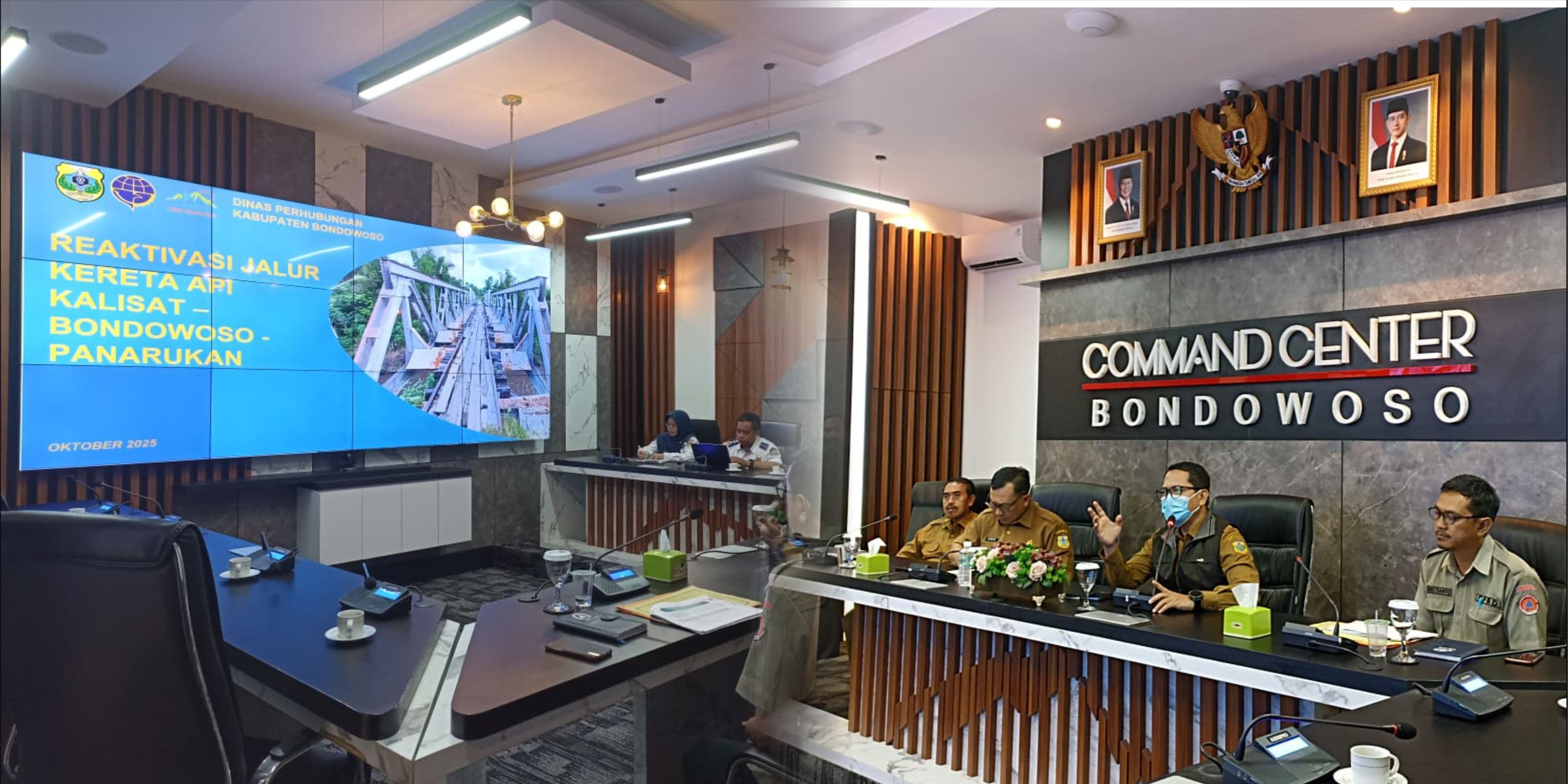 Dinas Perhubungan Kabupaten Bondowoso melaksanakan Rapat Koordinasi Reaktivasi Jalur Kereta Api Kalisat–Bondowoso–Panarukan pada Selasa (14/10/2025) pukul 15.00 WIB di Ruang Rapat Command Center Bondowoso.
